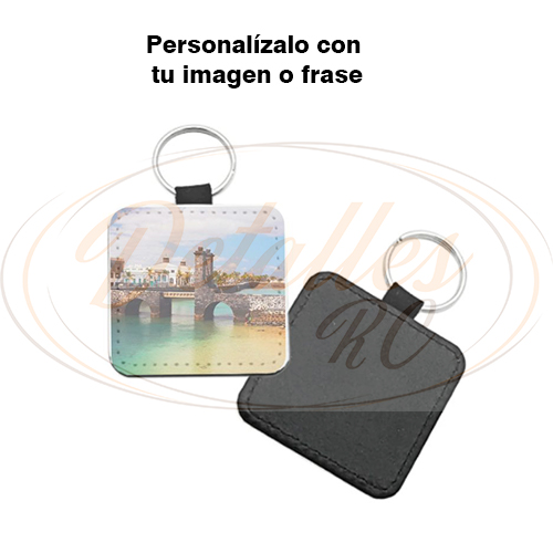 Llavero de piel sintética cuadrado, personalizado una cara. Trasera color negro.